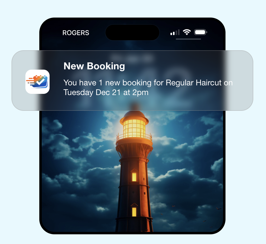 Quickfillo sends email to your clients for booking confirmation and reminders and notifies you once a booking is done by sending Push Notification right to your mobile phone